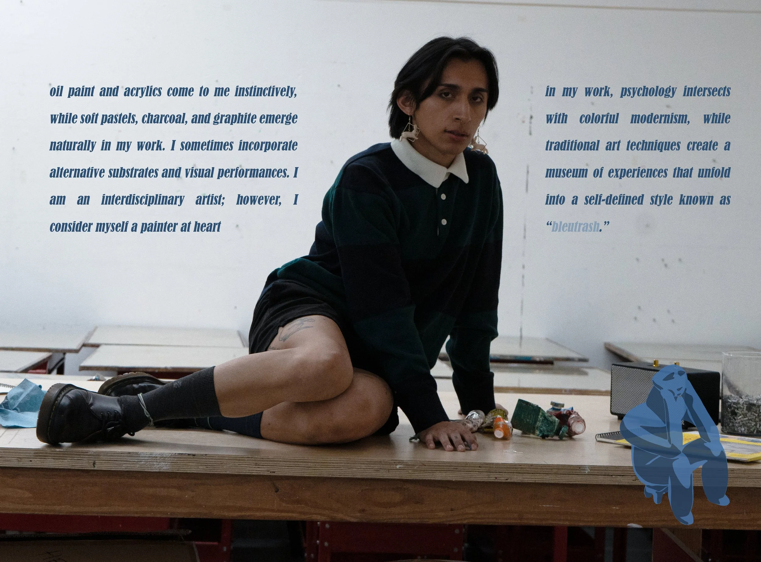 MY GRANDMOTHER WORKED THE MILPAS AND I ATE TORTAS DURING LUNCH AT SCHOOL. DINNER WAS FRIJOLES, A CUP OF MILK, A SLICE OF BOLIO. LIFE’S GOOD FOR A LITTLE BOY, BUT THEN THEY KILLED THE LAMB. SOMETHING INSIDE ME DIED THAT DAY TOO, SOMETHING INSIDE ME GREW. AND THIS FILTHY SIN CITY, I CALL HOME HAS GIVEN ME SOILDBEDS TO GROW MY PAINS. HOW DOES THIS DIRTY, BROWN, queer, bipolar, MEXICAN-AMERICAN INDIO EXIST IN AMERICA. OH GOD, IS THIS WHAT IT MEANS TO BE ALIVE? THEN BLEUTRASH IS THE ANSWER TO THESE QUESTIONS. A NEVER ENDING EXPOSE OF MY FAILURES, LOSSES, AND WINS… EVIDENCE OF HUMAN EXISTENCE. MAYBE BLEUTRASH IS JUST AN ANSWER FOR ALL MY SHITTY EXPERIENCES, LIFE'S NO GOOD TO AN IMMIGRANT CHILD ANYWAY.