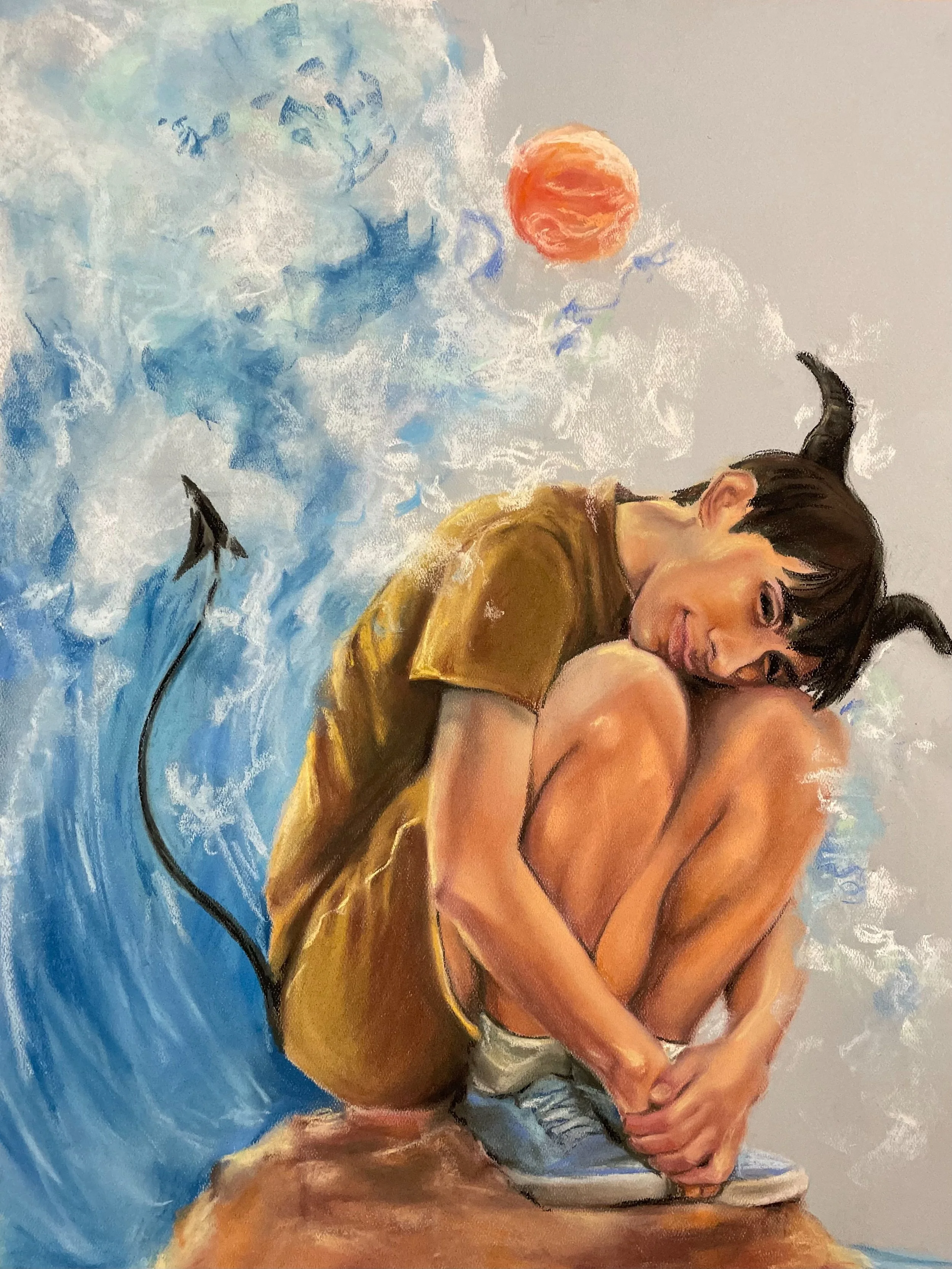 narcisstic hatred and all the love i ever gave you, diptych, (left/right), tell me how you want me, (middle), pastel on paper, 16 x 20 inches, 2022